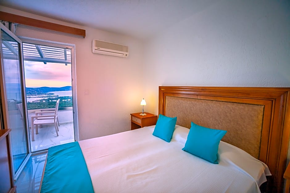 Grand Two Bedroom Family Apartment is 527 square feet and includes either a double bed 131-150 width or 2 single beds 80-130 width plus a sofa bed plus living room, balcony, terrace, extra beds on demand, satellite tv , hairdryer, tea and coffee making facilities , and safe.